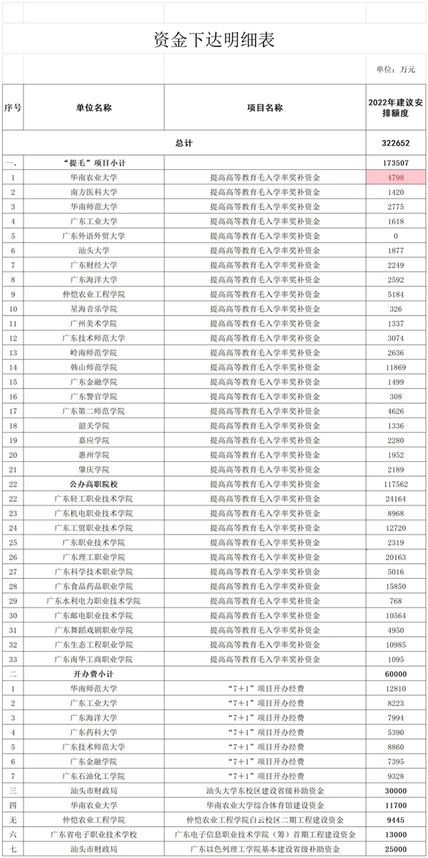 近日,广东省教育厅接连公示两项资金安排方案,拟安排共计近62亿元支持大学改革发展。分别是2022年高等教育“冲一流、补短板、强特色”提升计划资金安排方案,拟安排29.5亿元;省属公办高校提高高等教育毛入学率学位建设综合补助资金及其他基建项目资金安排方案,拟安排32.2652亿元。