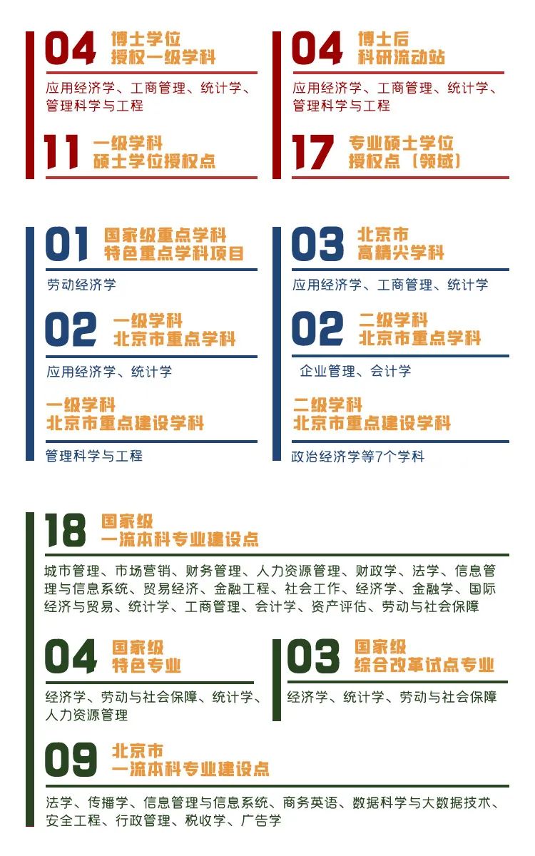 60余年来,学校已发展为一所以经济学、管理学为重要特色和突出优势,并拥有法学、文学、理学和工学等六大学科,各学科相互支撑、协调发展的北京市属高水平研究型大学。