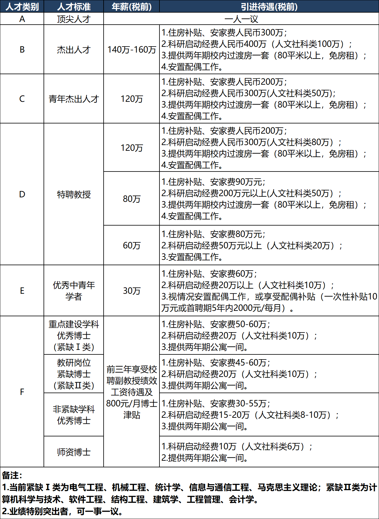年龄在35周岁以下,获得博士学位时间不超过3年,博士阶段取得了一定科研成果的优秀博士,可申请进入学校控制科学与工程流动站、交通运输工程流动站、铁路环境振动与噪声工程研究中心工作站,成为师资博士后。享受年薪20万元(税前)的待遇,在站期限一般为2年。详见:http://rsc.ecjtu.edu.cn/info/1034/1550.htm