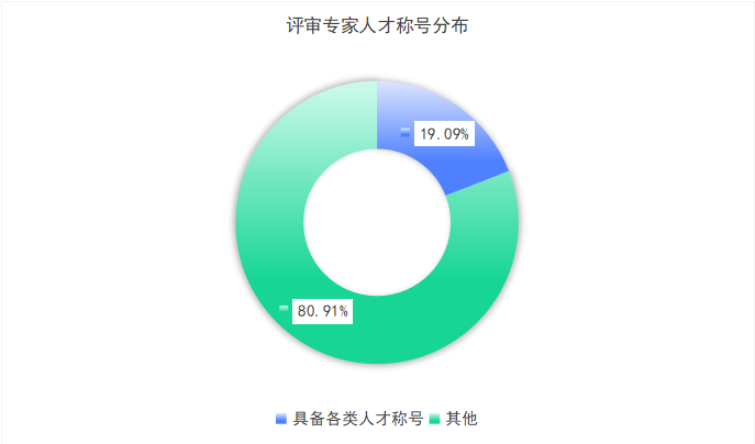 2252名评审专家中,有430位专家具有各类国家级人才称号,包括两院院士、教育部“长江学者奖励计划”特聘教授和青年学者、“国家杰青”、国家“万人计划”领军人才、教学名师和青年拔尖人才、国家“百千万人才工程”、“国家优青”、新世纪优秀人才支持计划等,占比为19.09%。数据表明,评审专家在人才称号方面表现出较高的水平,说明受访专家在学术界和科研领域具有较高的地位和影响力,是各自领域的杰出代表。